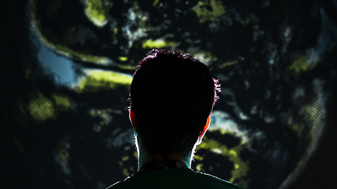 The Well-Formed Eigenfactor project is shown in the powerdome in Potsdam, an immersive visual projection environment.